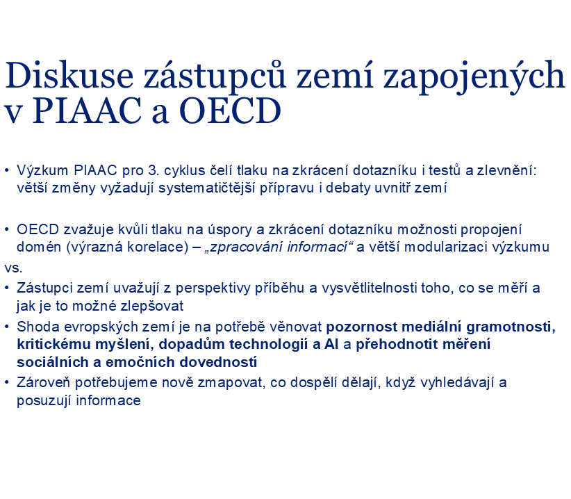 20. a 21. října proběhlo v centru OECD v Paříži setkání zástupců jednotlivých zemí, které se účastní výzkumu PIAAC.